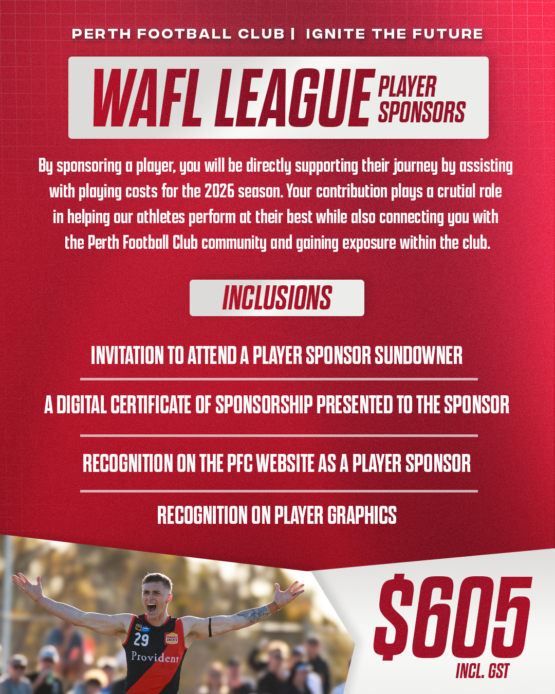 To become a player sponsor in 2026, email marketing@perthfc.com.au and enquire🔴⚫️